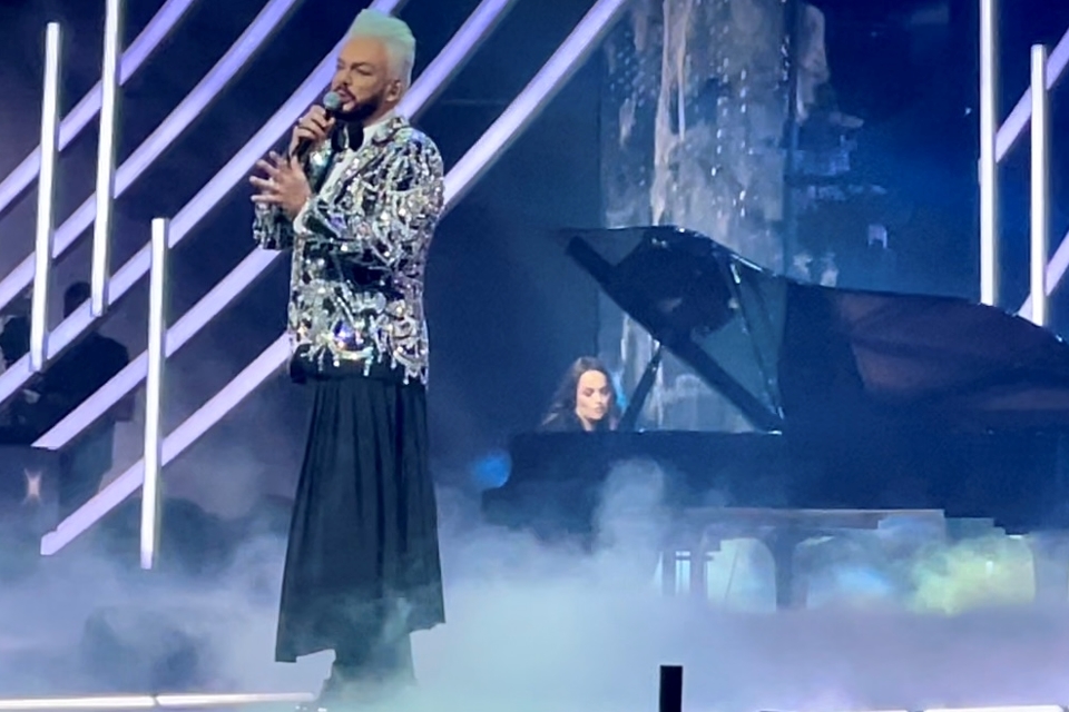 Другие звезды тоже расстарались с эффектными нарядами и номерами. Так, Филипп Киркоров вышел на сцену в брюках со шлейфом, и при определенном ракурсе казалось, что поп-король в юбке.