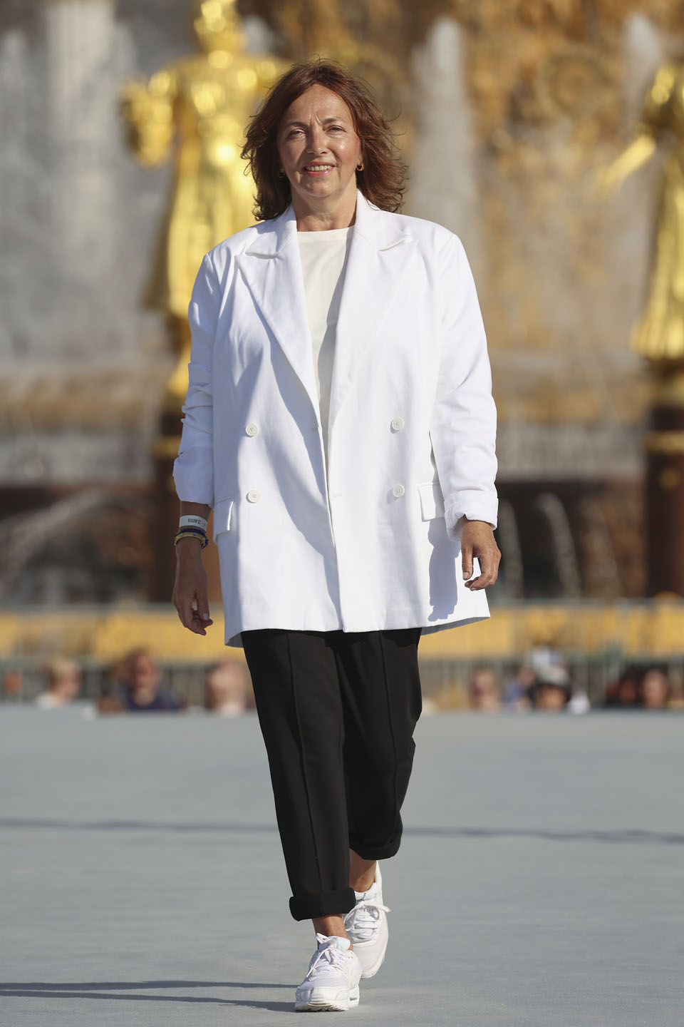 От DNK.Russia в качестве модели выступила жена главы «Роскосмоса» Татьяна Рогозина. Коллекция бренда была создана совместно с Госкорпорацией «Роскосмос». Ценители моды могли увидеть космические комбинезоны и бушлаты, футуристичные переливающиеся тренчи, а также необычные образы с ушанками и кокошниками. Сама Татьяна была одета в стильный и лаконичный брючный костюм с белым пиджаком в стиле оверсайз. К нему добавили небольшое количество аксессуаров и белые кроссовки – и получился отличный образ из серии «и в пир, и в мир». Поддержать жену приезжал Дмитрий Рогозин.