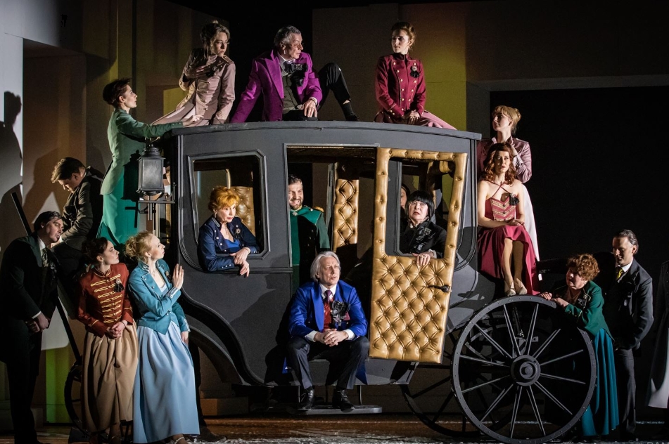 Карета — это сценическая метафора, обозначающая не то «телегу жизни», где время гонит лошадей, как у Пушкина. Не то волшебный портал, через который появляются действующие лица и таким же образом покидают сцену. Карета — главный элемент сценического пространства, сочиненного художником Станиславом Бенедиктовым и художником по свету Нареком Туманяном. Это пространство захватит не только сцену, но и зрительный зал до самой ложи.
