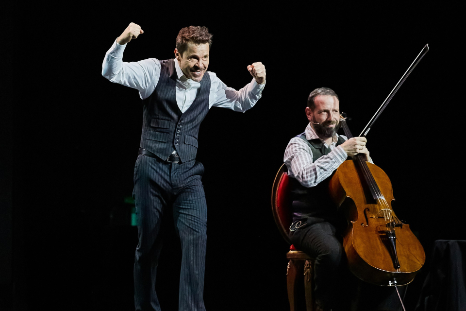 — Мы сделали этот спектакль уже три года назад, он тогда назывался «Идеальная пара». Премьера состоялась в День святого Валентина. Но День святого Валентина закончился, а спектакль остался. Полтора часа на сцене — только я и наш прославленный виолончелист Боря Андрианов. Это может показаться немножко скучным, но это не так, вообще ни на секунду! Все это время зритель получает заряд интеллигентного юмора. Это весело, остроумно, смешно, динамично. Это то, что меня греет. Я сам театр, честно говоря, не очень люблю, уже разочаровался в нем. А вот такой формат, как в «Хулиганах», с большим удовольствием приемлю, — объясняет Деревянко.