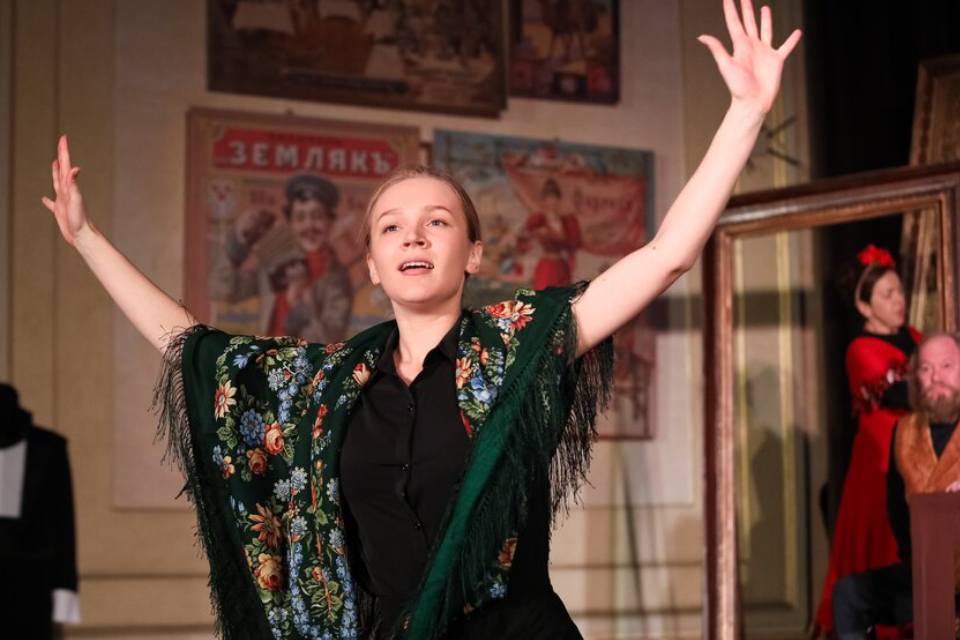 Нельзя не сказать и о романсах, удачно вплетенных в полотно постановки и предавших ей ту самую народную задушевность и какой-то особый уют прошлого. Звенящим голосом Анастасия Борисова и манерная Алина Ивах исполняли баллады и песни для заонежской кадрили, закружившей в танце всех артистов.