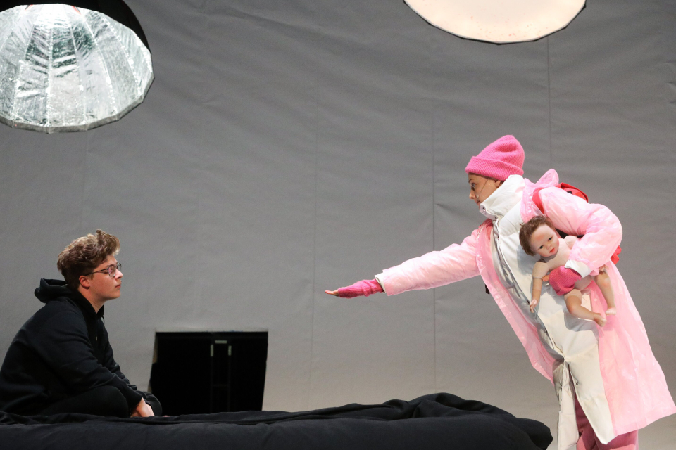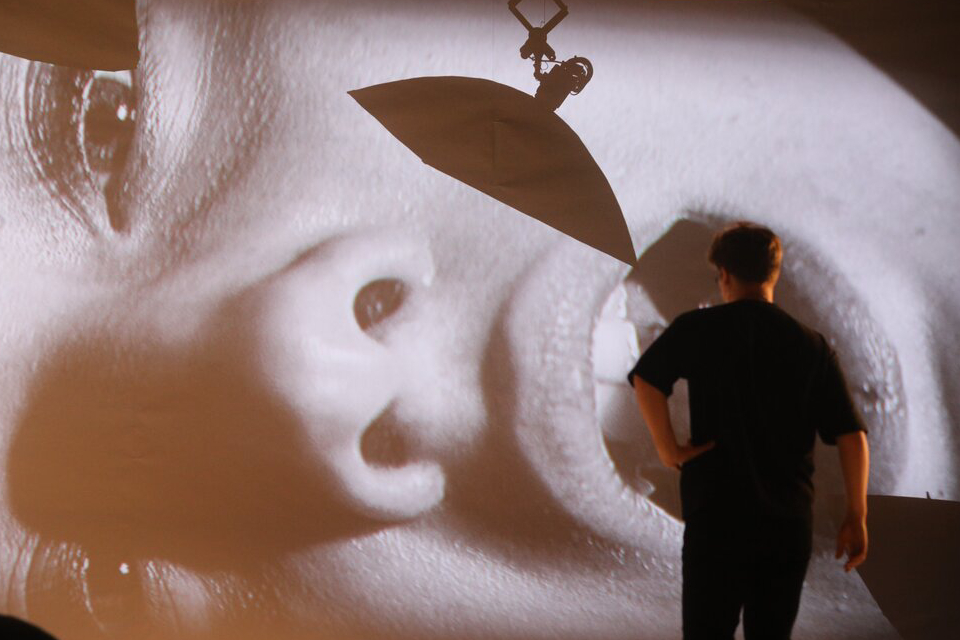 Отлично дополняет эту задумку сценография и костюмы, созданные Анастасией Бугаевой. Все действие происходит на огромном белом холсте бумаге, на котором герои создают свою историю. Художник Кай, лишенный возможности выразить свои мысли как-то иначе, выплескивает их вместе с красками на этот белоснежный лист, заявляя о себе миру и зрителю.