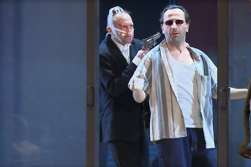 Но что такое «три уровня конфликта» (можете погуглить) — режиссёр не знает. Актёры, подволакивая ноги, как полумертвецы, таскаются по сцене, читают некие монологи, считают овечек; что вообще происходит и куда они идут, перестаёшь понимать уже минуте на двадцатой.