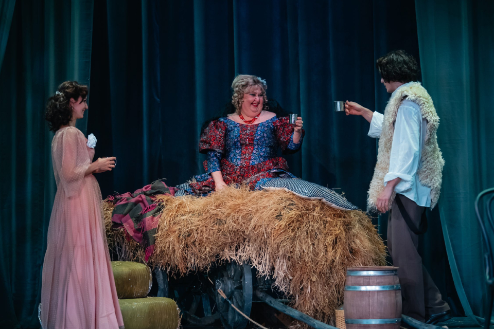 Яркие костюмы, интересное разделение сцены на разные планы, что создает глубину сценического мира и как бы затягивает. Использование бокового пространства зала, игра света и точно подобранные декорации — в купе с атмосферным исполнением любовных романсов и песен куртизанок, все это создает неожиданный спектакль — живой и трогательный.