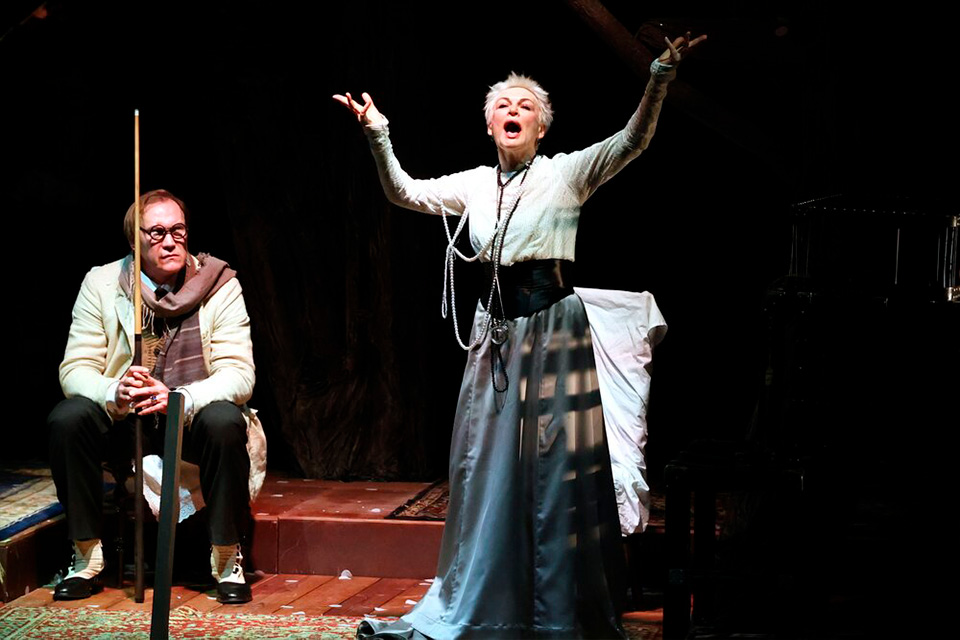 Серьезную работу проделал актёрский состав, чтобы создать грымовского Чехова. Так Людмила Погорелова в роли Раневской лишена той грации, которую мы привыкли видеть. Её движения резкие, а внешнее спокойствие — лишь тонкая ледяная корка, под которой пульсирует глубинное напряжение. В её роковую любовь верится с трудом, но монолог о погибшем сыне, когда на сцене появляется его призрачная фигура на качелях, пробирает зал до мурашек. Гаев Юрия Анпилогова — это трагический инфантил, человек добрый, но совершенно не способный к действию. Его персонаж вызывает скорее сочувствие к его беспомощности, чем жалость.