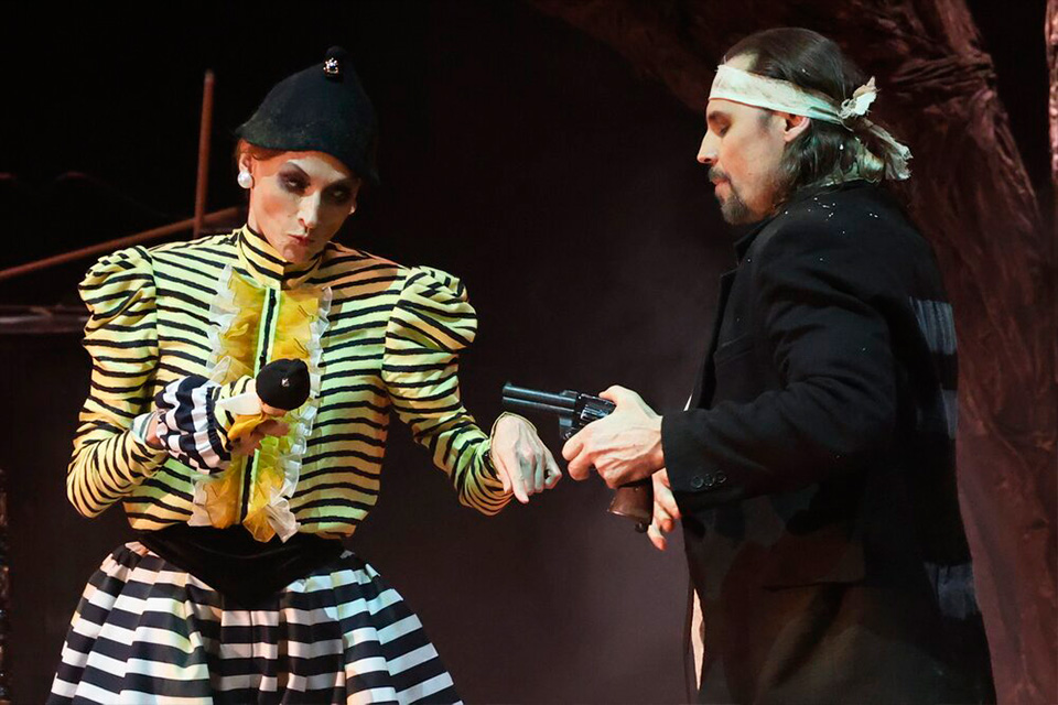 Её странные монологи и цирковые номера подчеркивают призрачность уходящей эпохи, где грань между реальностью и игрой полностью стерта.