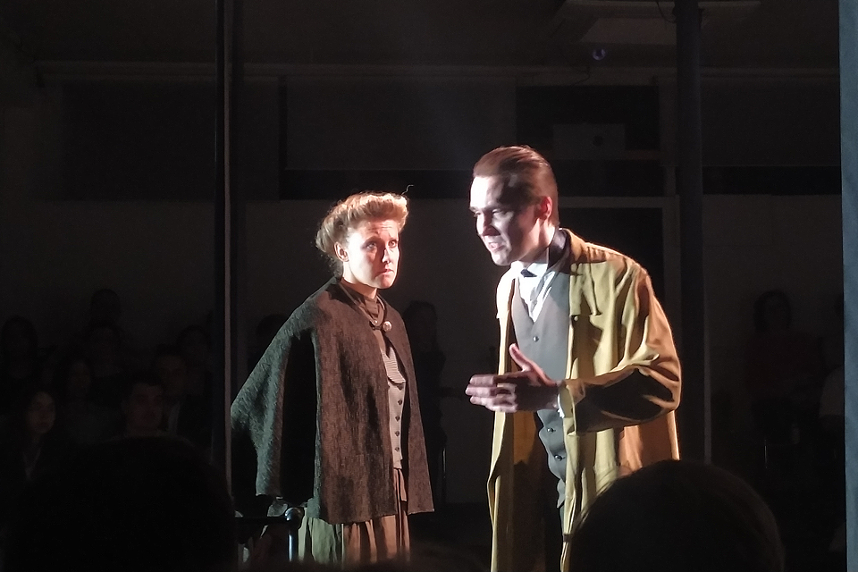Не перестает удивлять уровень актерского мастерства артистов театра МОСТ. Это всегда полная отдача и полное перевоплощение. Так, главную героиню старушку-Анну играет достаточно молодая актриса Вера Семенова. Сгорбившись, старчески дребезжа и вечно заглядывая к потолку, то ли молясь, то ли вспоминая, героиня Веры не воспринимается как девушка. Мы видим почтенную преклонных лет вдову, хотя ничто в гриме не указывает на это, лишь только подача самой Веры Семеновой.