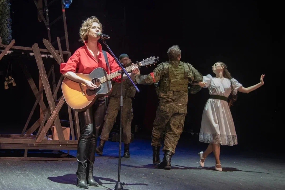 В постановке исполняется множество песен. Так, помимо известных, звучат и совершенно новые в исполнении певицы Юты. Заслуженная артистка России представила свои композиции, впервые сыграв драматическую роль Артистки, выступающей перед бойцами. В роли Гимнастеркина предстает Тимур Еремеев — он также стал и композитором. В спектакле сыграли: Командир — Андрей Пойдышев, Танкист — Дмитрий Ломакин, Боец — Андрей Кочинов, Снайпер — Максим Чиков, Медсестра — Анфиса Ломакина, Невеста — Любовь Баленко, Разведчик — Константин Днепровский.