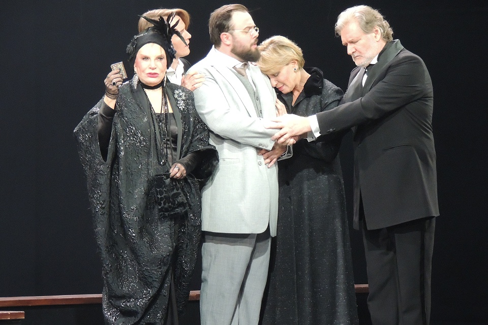 Старшее поколение вахтанговцев работает яркими красками. Для старого князя Болконского (Евгений Князев/Виктор Сухоруков) как будто бы военная служба превыше всего, но он не очень похож на доблестного вояку, для которого честь и достоинства не декларация, а принцип жизни. Болконский в исполнении Евгения Князева далек от канонического образа, который мы знаем по фильму Сергея Бондарчука (в кино старого князя играл Анатолий Кторов). В спектакле Туминаса это вздорный, капризный и сладострастный старик (тискает мадемуазель Бурьен). Конечно, он не герой Сен-Готарда, а, скорее, клоун на кладбище (так характеризовал чеховских героев другой режиссер Андрей Кончаловский, имея в виду, что прототипы все умерли). Клоунов будет много. «Кончина вашего батюшки очень огорчает. Но как же теперь коллекция его табакерок?» – спрашивает светская Марья Игнатьевна Перонская (ее играет Людмила Максакова). Туминас дал фору Максаковой по части характерности. У нее, безусловно, самая яркая и выигрышная роль. Чего стоит только ее выход на сцену с канистрой горючего: Москву «сама сожгу, ничего не оставить врагу. Каретный ряд я уже запалила. Завтра еще сделаю визит с красным петухом».