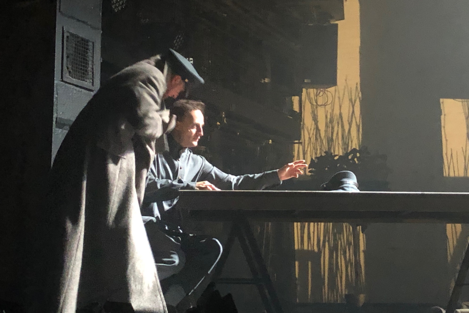 Все чувства и эмоции герои спектакля передают при помощи пластики. Особенно эффектно и душераздирающе решена сцена, когда в доме учителя размещается трофейная комиссия. Солдаты в исподнем сначала живые, один за другим перешагивают некую черту и вот уже не шевелятся. Поток воды, обрушивающийся на них, – не то обмывание, не то попытка вернуть к жизни.