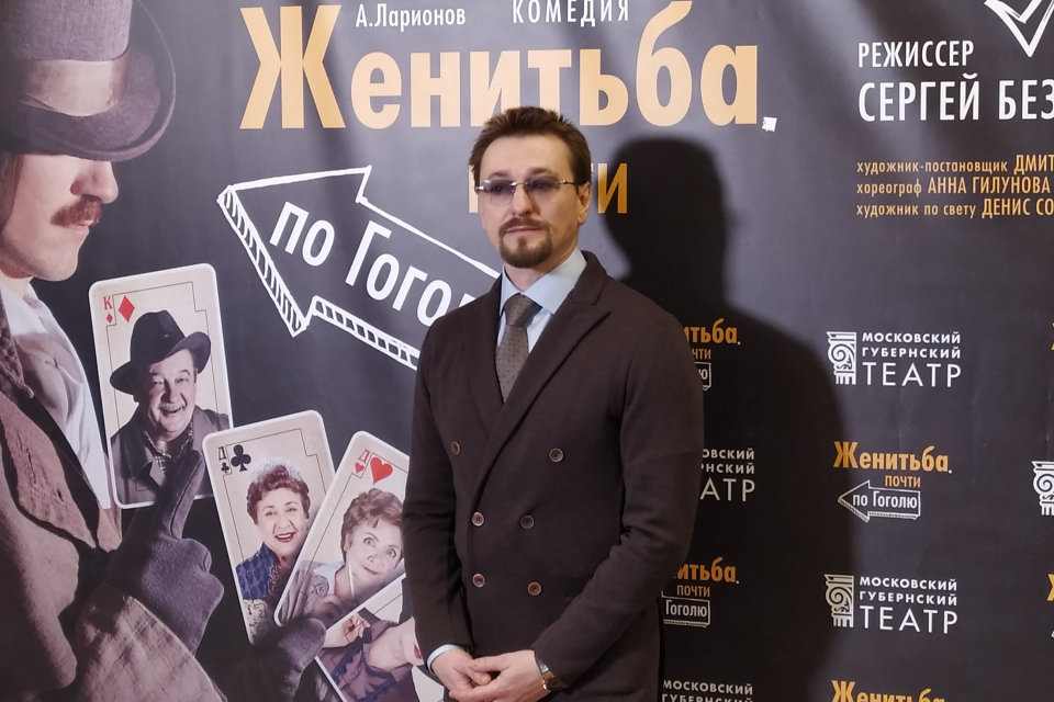 Московский Губернский театр практически не ставит спектаклей в классическом смысле этого слова. Это нечто большее, располагающееся за гранью плоского мира сцены, нечто мистическое, начинающееся в актере и продолжающееся в зрителе. Сергей Безруков – художественный руководитель театра и режиссер первой премьеры 2023-го года «Женитьба. Почти по Гоголю», рассказал корреспондентам, что ощущает себя сказочником, и, поэтому, каждая его постановка должна нести за собой полноту жизни, погружая и увлекая зрителя в иную реальность.