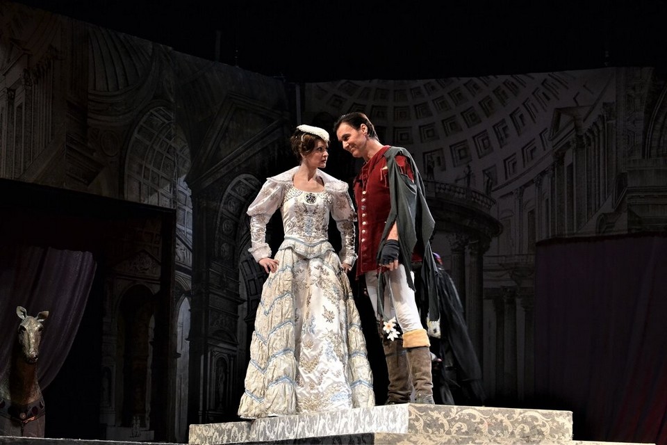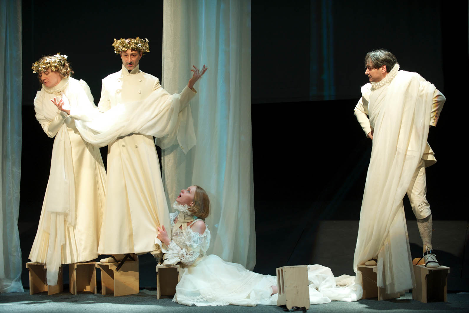 Режиссер Иван Поповски поставил спектакль, в котором заняты все поколения «фоменок»: Серафима Огарева в роли Гермии, и Карэн Бадалов сразу в двух ролях: он играет афинского герцога Тезея, и царя эльфов Оберона. В двух ролях выходит на сцену Галина Тюнина – она и Ипполита, невеста Тезея, и Титания, царица эльфов. Амбарцум Кабанян и распорядитель празднеств Филострат и добрый малый Робин в волшебной половине истории. Режиссер обратил комедию Шекспира в волшебную, сказочную материю, где есть и трюки, и акробатика на уровне цирковых гимнастов, и музыканты, которые играют на арфе и скрипочке, раскачиваясь в платьях-корзинах на уровне колосников.