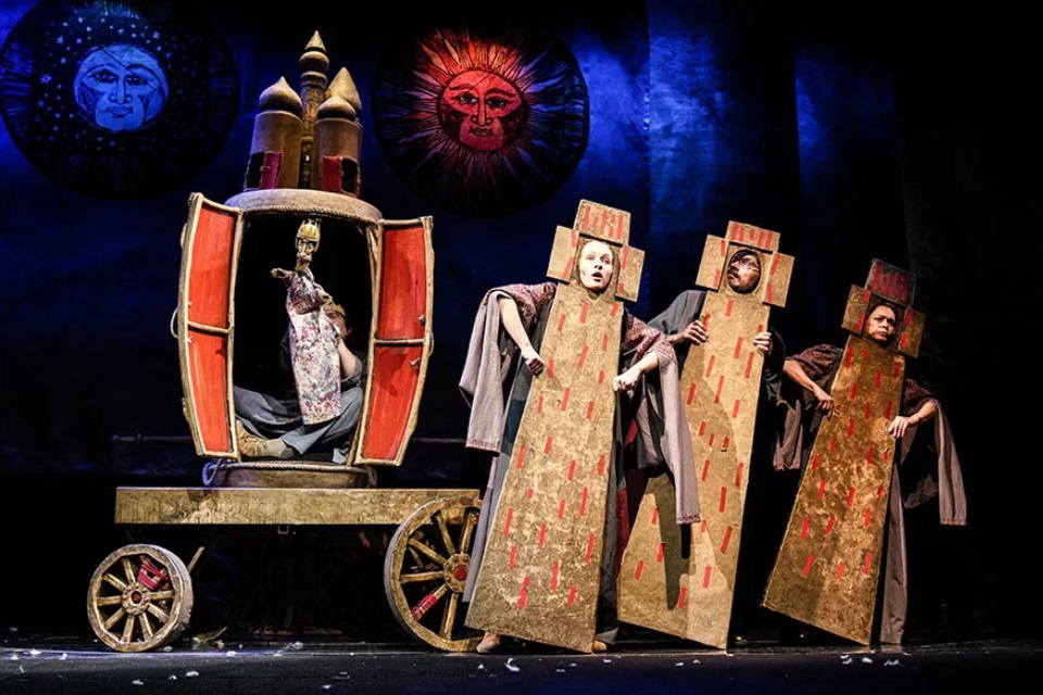 «Сказку о царе Салтане» показывают часто: у Образцова она была в 1970-х годах в постановке великого остроумца Семена Самодура. Спектакль Бориса Константинова не повторяет, но закольцовывает «обновление» — режиссер нашел возможность показать историю по-новому. Поэтому в руках у Гвидона, как у Пушкина — хулигана нынешнего дня, появилась электрогитара. Сочетание народных гуслей и электрогитары — это синтез древнего и современного, мост, соединяющий старое и новое в одну историю. Так старый театр — деревянный, с механическими спецэффектами — становится молодым, дерзким, свежим.