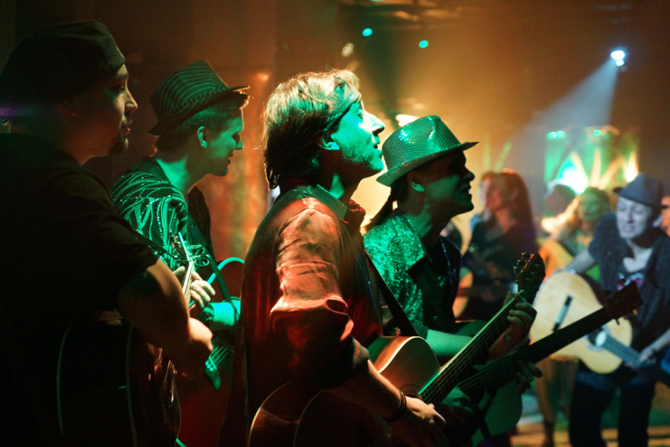 Не до конца ясно, что же такое «Гитары». То ли это спектакль, то ли разговор по душам, то ли история гитарной музыки, то ли поэтическое признание в любви музыкальному инструменту. Ясно то, что из зала равнодушным не уйдёт никто. Из огромного разнообразия гитарного репертуара в любом случае найдётся что-то, что зацепит и откликнется. В постановке можно услышать и цыганские напевы, и испанскую страсть фламенко, и иронично-лёгкий французский шансон, и американские переливы блюза, и, конечно же, бессмертную лирику Иосифа Бродского, Булата Окуджавы, Бориса Пастернака, Николая Гумилёва и других – лирику, словно созданную для гитарных переливов.