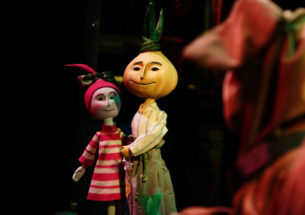 «Чиполлино» в Театре кукол им. Образцова – спектакль совсем новый. Его премьера состоялась в мае 2021 года в рамках XXI Открытого Фестиваля Искусств «Черешневый лес». Персонажи итальянской сказки Джанни Родари знакомы каждому ребёнку – мальчик Луковка, девочка Вишенка, синьор Помидор, принц Лимон, дядюшка Тыква. И как же здорово увидеть всю эту фруктово-овощную компанию не на экране или в воображении, а на театральной сцене.