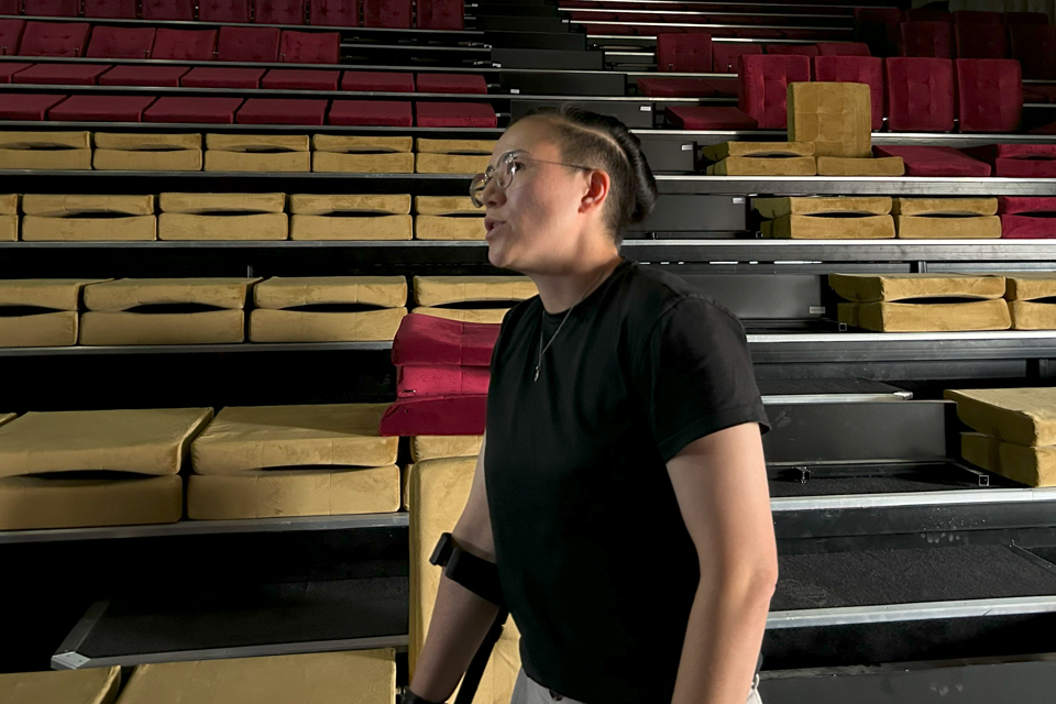 «Если на сцене происходит какое-то действие вокруг актера, то каждый зритель ощущает себя на месте актера. Это происходит благодаря тому, что звуковая дорожка движется по определенной траектории и соответствует изображению», – объясняет руководитель театра Евгения Харада.