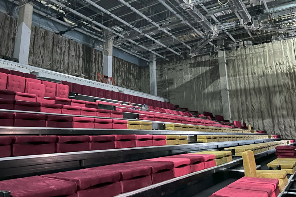 Обеспечить проведение таких разных мероприятий позволяет высокотехнологичная трибуна, которая легко трансформируется: ее можно выдвинуть во время театральных спектаклей или убрать, что обеспечит танцпол во время музыкальных концертов или место для столиков во время кабаре-шоу.