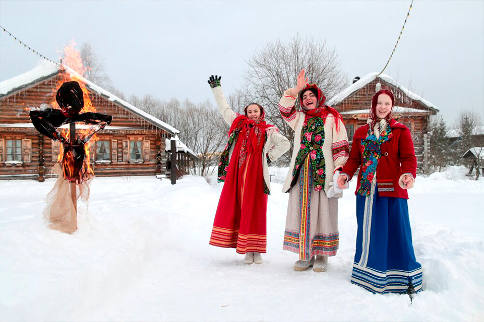 Парк-музей Этномир приглашает на празднование Широкой Масленицы. Сжигание чучела Масленицы около Главной сцены состоится 21 и 22 февраля в 17:00.