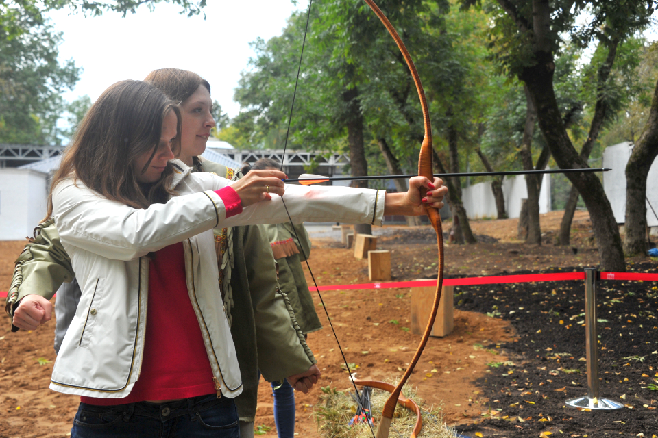 Актер воплощает политрука Василия Клочкова, произнося: «Велика Россия, а отступать некуда — позади Москва!» (бой у Дубосекова, 1941). Гости узнают о контрнаступлении под Москвой. Для детей подготовили специальную полосу препятствий.