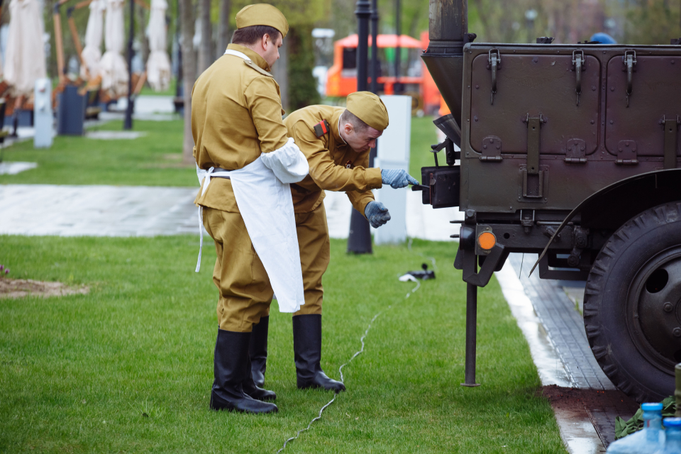 На территории будет работать выставка военной техники, а также полевая кухня с традиционными фронтовыми угощениями.