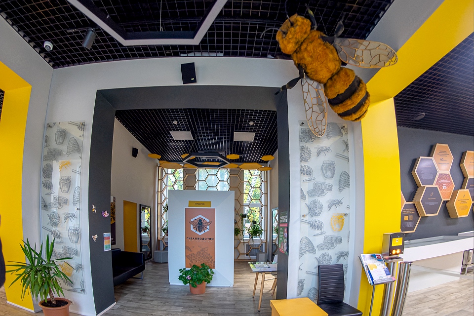 Павильон «Пчеловодство» сосредоточен на насекомых и продуктах их жизнедеятельности: здесь говорят о пчёлах как объекте научного исследования, о роли опылителей в экосистемах и о том, как работают лаборатории, изучающие цвет, структуру и состав природных веществ.