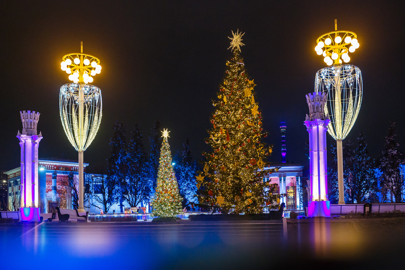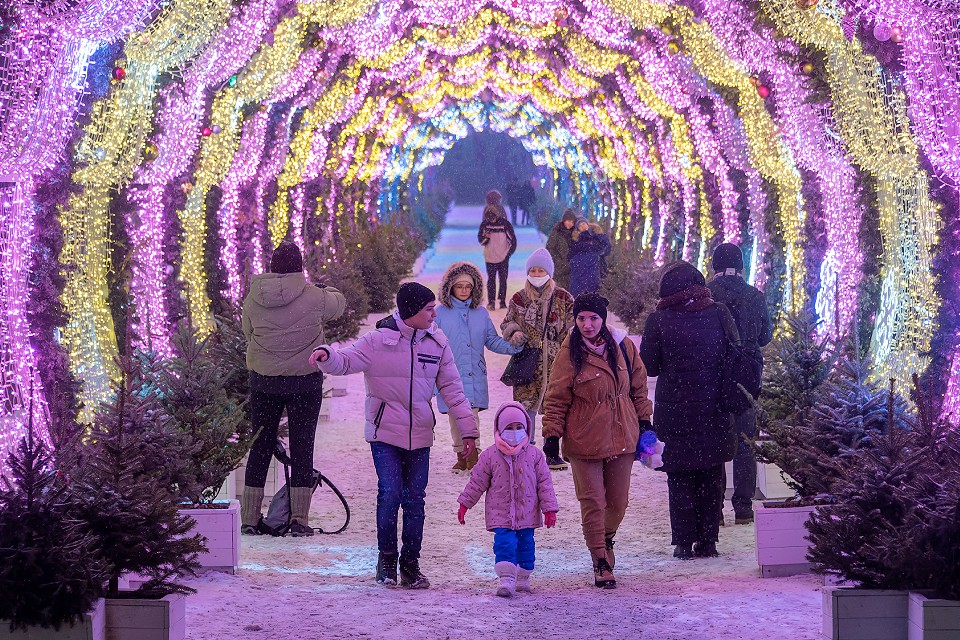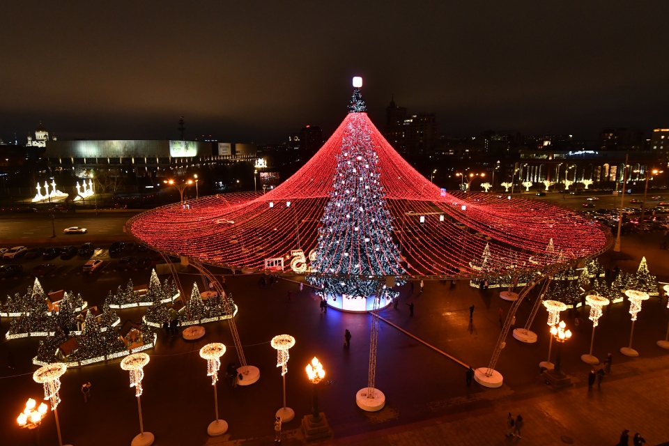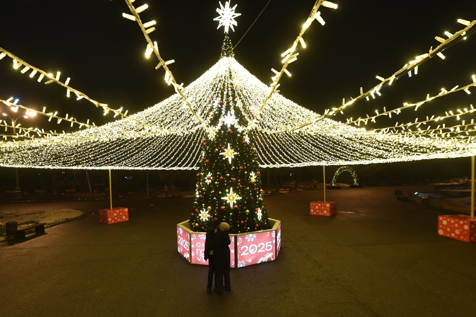 Зимнюю сказку установили во всех округах и в каждом парке. Главными символами праздника по традиции стали новогодние ели с разноцветными шарами и гирляндами.