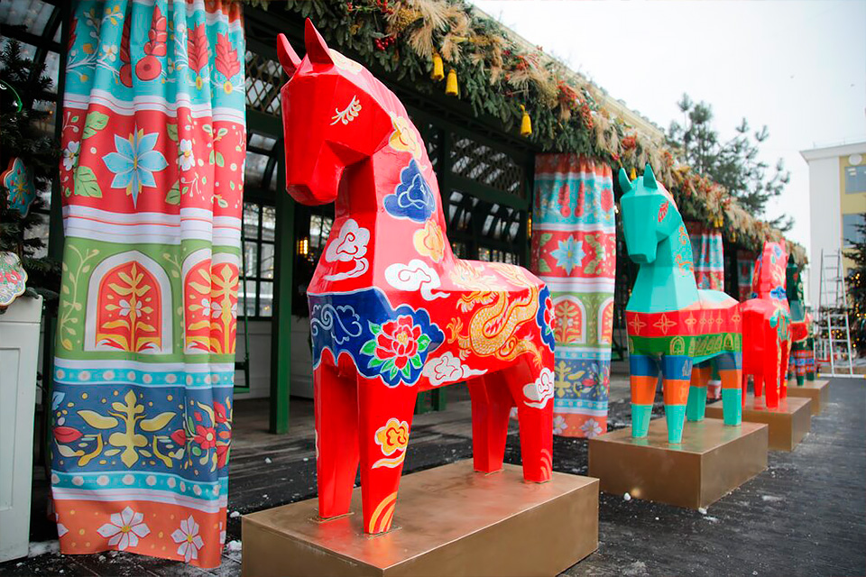 Кроме того, на площадке был разбит зимний сад с конкурсами. Мастера из Гжели, Поволжья, Алтайского края и других регионов провели мастер-классы. Здесь можно было расписать подставку под горячее традиционными гжельскими узорами, слепить поволжских лошадок из сена и лыка или попробовать себя в алтайской лоскутной технике, создавая куклы-масленички.