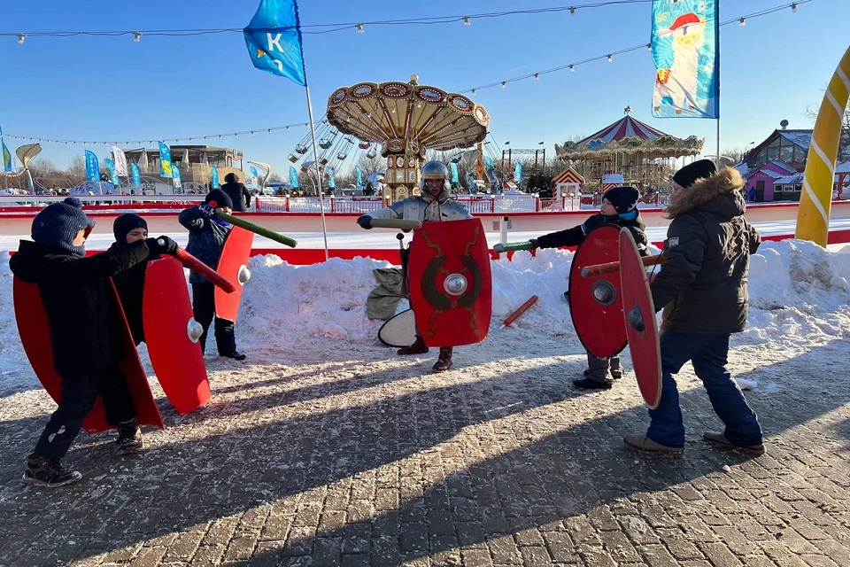 Выставляется историческая парадная техника — шедевры советского автомобилестроения, многие из которых можно было видеть в художественных фильмах о Великой отечественной. Рядом покажут античное воинское снаряжение. Его можно примерять, сделать фото (должны оценить мужчины, часто думающие о Римской империи). На память о празднике предлагают бесплатно отчеканить себе монету. На сцене поют участники театра эстрадной песни, аниматоры организуют эстафету и проведут детскую дискотеку.