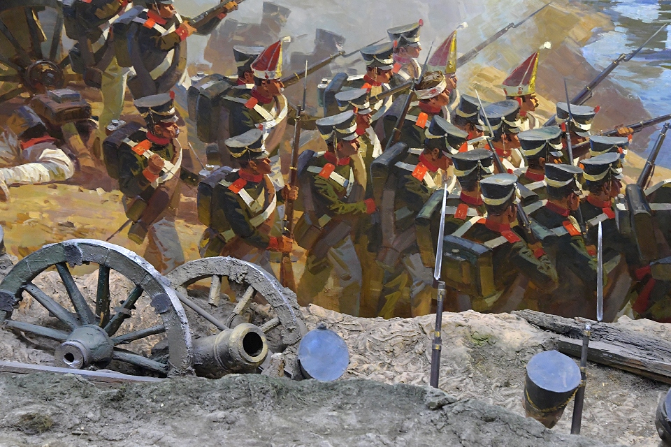 В центре выставки находятся работы художника-иллюстратора Александра Апсита и баталиста Николая Самокиша. На ней представлены изображения униформы и боевых эпизодов из полковой истории Отечественной войны 1812 года, а также заставки к главам печатных изданий, приуроченных к 100-летию победы над Наполеоном, иллюстрации к роману-эпопее Льва Толстого «Война и мир» и другие рисунки.