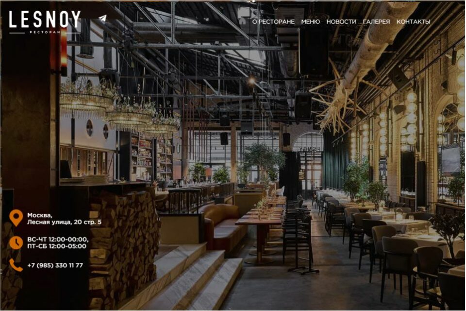 Это главный московский ресторан с лесной кухней, который располагается историческом здании миусского депо на Лесной улице. Lesnoy — одно из самых атмосферных мест в городе, которые предлагает вкуснейшую кухню, богатый бар, танцы и караоке.