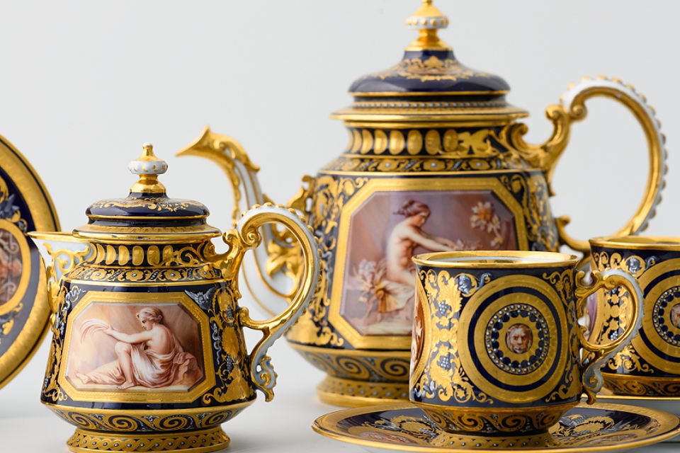 Жемчужина – чайный сервиз с декором по рисункам росписей Лоджий Рафаэля в Ватикане. Его изготовили специально по заказу императора Александра II. А еще есть редкая серебряная скрыня (сундучок) начала XVIII века, единственный в России столик для рукоделия рубежа XVI-XVII вв. из Западной Европы.