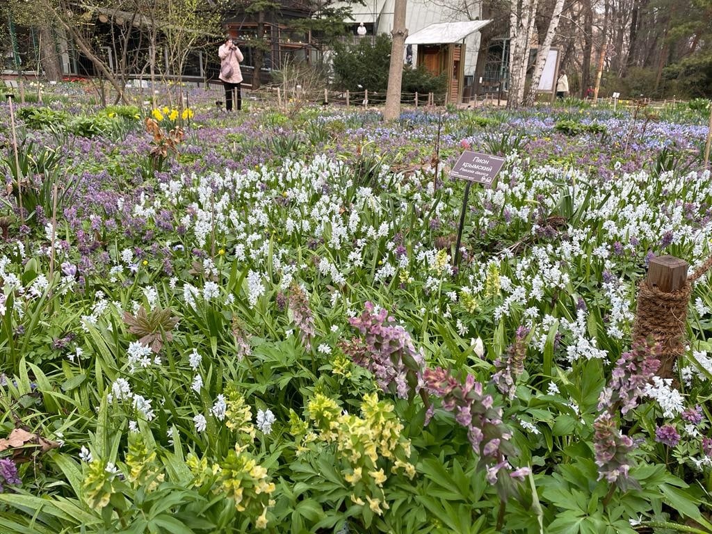 Совсем недавно в Аптекарском огороде распустились огромные ковры первоцветов. Среди них растения, привычные для Средней полосы России, но редкие для Московского региона: хохлатки, пушкинии, хионодоксы и ветреницы.