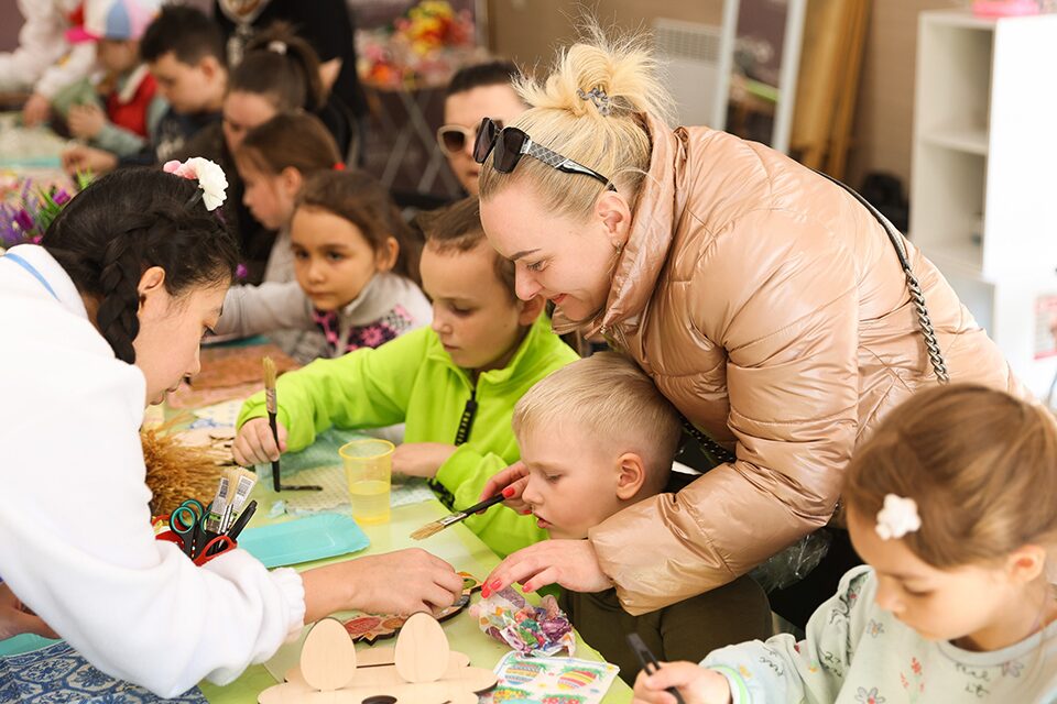 Музыкальную программу дополнил мужской камерный хор «Логос» и фольклорная группа. Детям предложили посмотреть пасхальный спектакль «Мальчик и синичка и расписать деревянные фигурки.