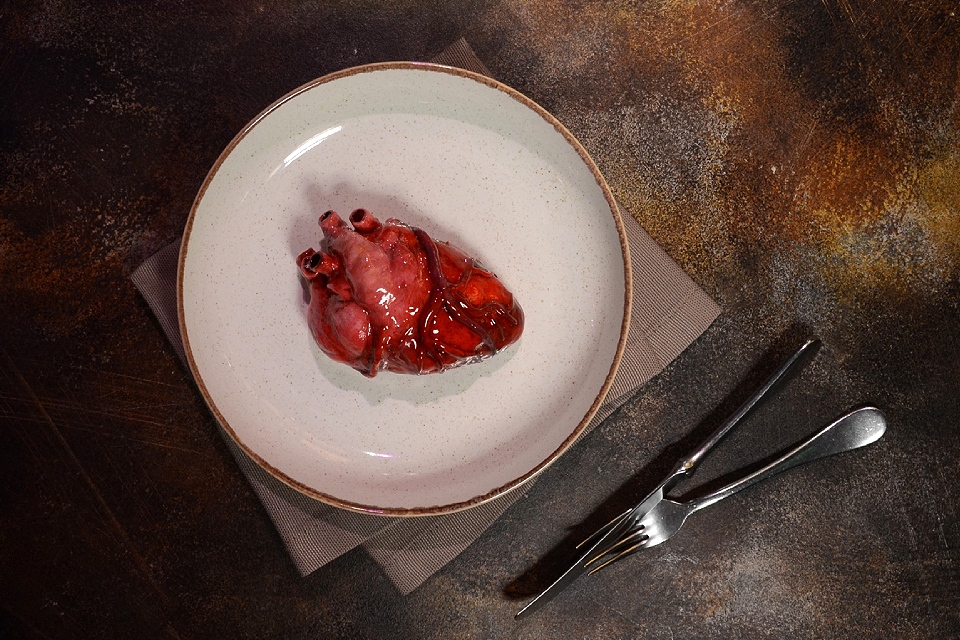 А на сладкое – необычный десерт от ресторана «Жажда крови» (Лесная, 9). Он выполнен в виде сердца – но не того красивого и изящного, с которым у всех ассоциируется 14 февраля, а настоящего и очень реалистичного человеческого. Его создатели говорят, что он практически не отличим от оригинала. Внутри десерта – медовый и карамельный бисквит, пропитанный сливочным ликером, дополненный черносливом и кремом из шоколада и сгущенки.
