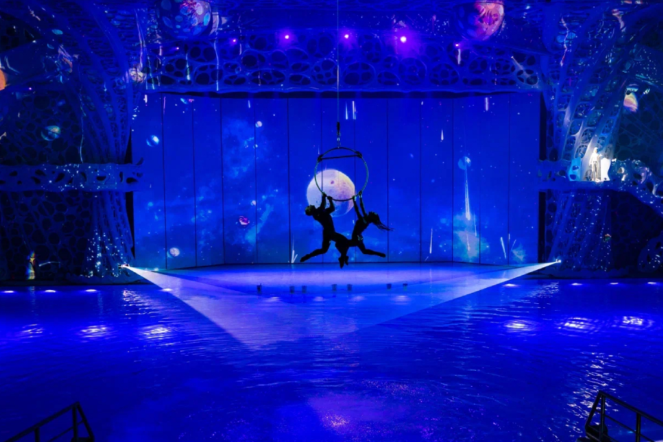 С самого начала гости представления смогут увидеть необыкновенной красоты мультимедийное шоу и выступления артистов в воде и в воздухе. У зрителей на глазах происходит смена сезонов, которая сопровождается виртуозным исполнение «Времен года» Вивальди.