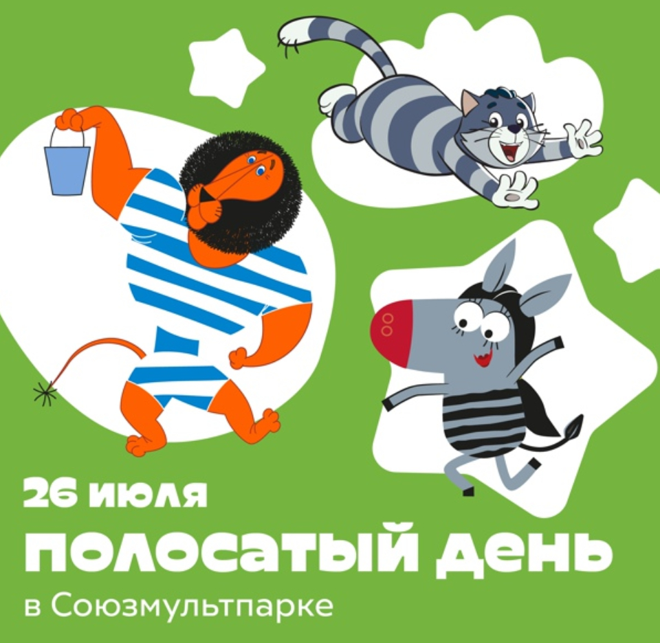 26 июля 2022 года в Союзмультпарке на ВДНХ в Москве пройдет настоящая «полосатая вечеринка». Гостей площадки встретят Кот Матроскин и Лев Бонифаций.