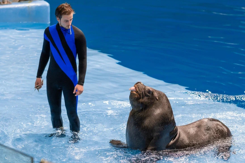 С 1 октября по 20 ноября 2022 года в Центре океанографии и морской биологии Москвариум на ВДНХ проходит программа «Ная. Знакомство с морскими обитателями». Это открытые тренировки с участием косаток, дельфинов и ластоногих, которые полюбились многим посетителям океанариума. Каждый зритель «Наи…» становится свидетелем невероятного взаимодействия тренеров и морских животных в режиме реального времени.