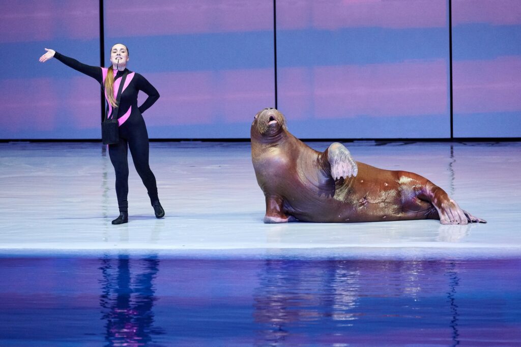 Анимацию будет сопровождать выступление морских артистов: дельфинов, ластоногих, а также главных звезд «Москвариума» – косаток Нарнии, Норда и Найи. Шоу сопровождается 5D-эффектами: морскими звуками, запахом океана, брызгами воды. Начало сеансов с 15.00.