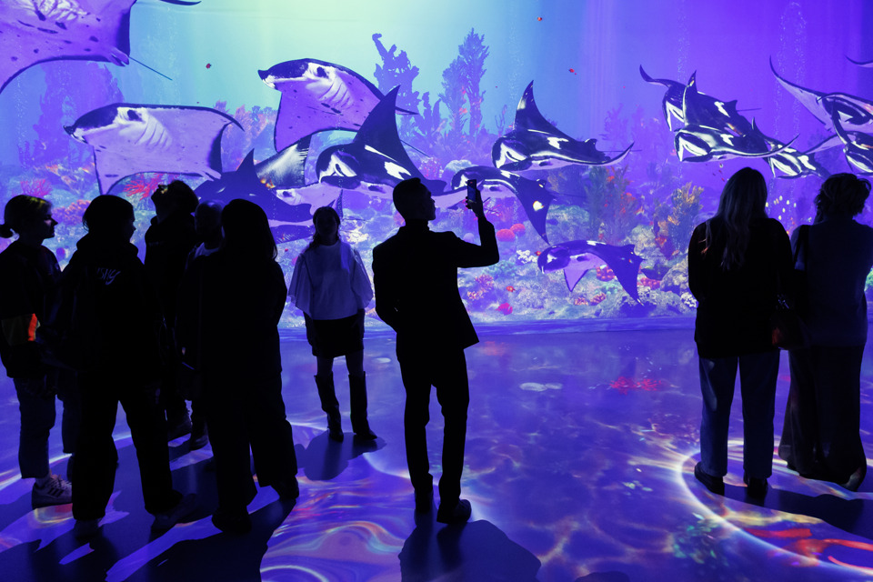 В проекционном зале «Мир» предстоит погружение на дно океана. Мимо будут проплывать гигантские киты и косяки рыб. Зеркальная инсталляция «Аура» переносит в мир вне времени и пространства, а купольный зал «Сфера» доставит прямиком на дно фантазийной Марианской впадины. Затем цифровой портал перенесет зрителя в очень фотографичные локации, где можно наделать эффектных снимков.