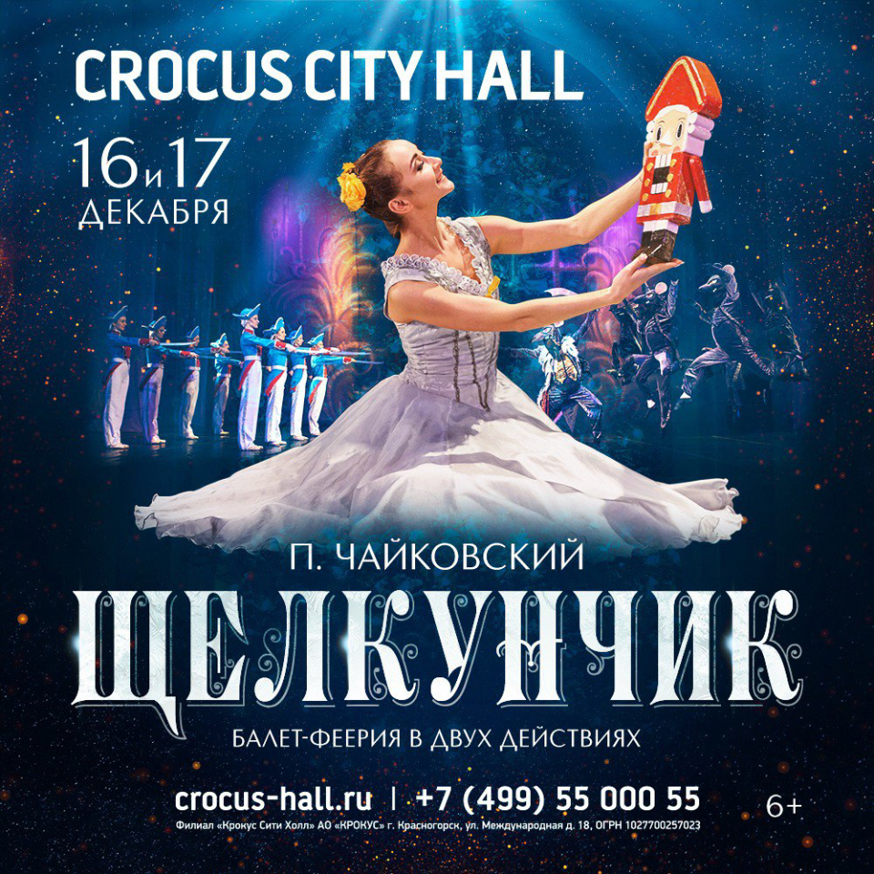 16 и 17 декабря 2022 на сцене Крокус Сити Холла представят волшебный балет Петра Ильича Чайковского «Щелкунчик». Зрители увидят удивительную хореографию М. Петипа и Л. Иванова. Балетный спектакль подарит ощущение предновогоднего чуда и хорошее настроение.