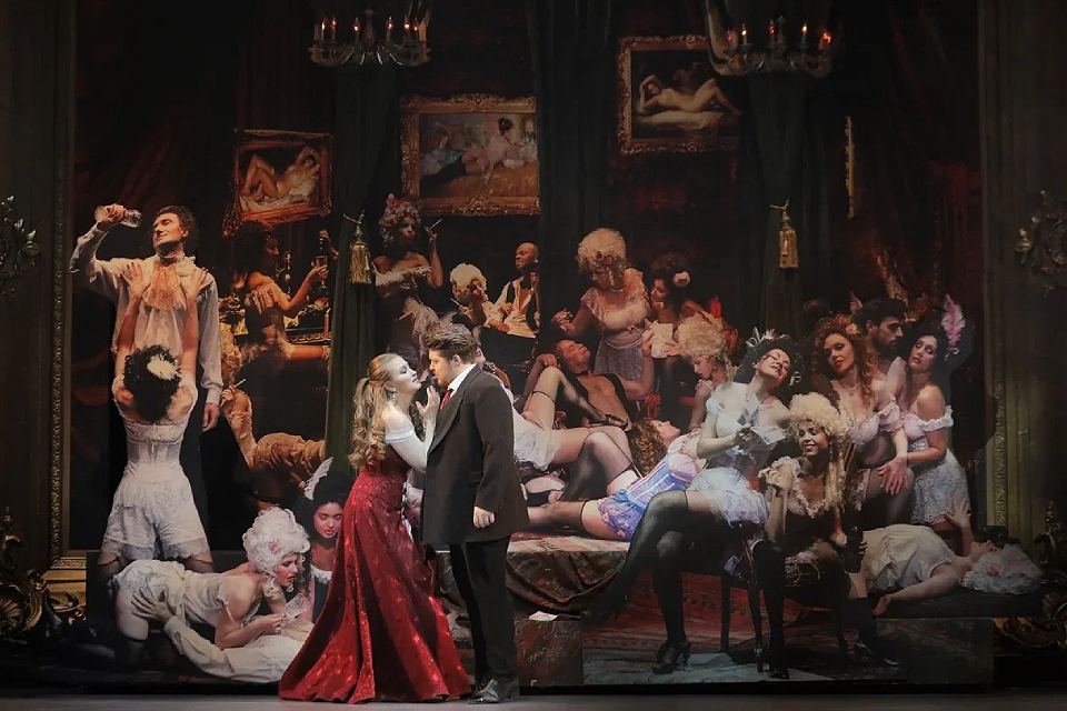 Оперный спектакль Дмитрия Бертмана в «Геликоне» стал хитом репертуара, но его интерпретация далека от традиционного прочтения. Постановка переносит действие в Париж эпохи Тулуз-Лотрека — на рубеж XIX–XX веков. Это придаёт истории о любви куртизанки и юноши из буржуазной семьи дополнительное напряжение и драматизм.