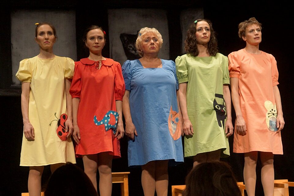 Режиссер экспериментирует с постановкой пьесы и к финалу, когда каждая из участниц ансамбля рассказывает о себе, эта смешная история превращается в трагедию.