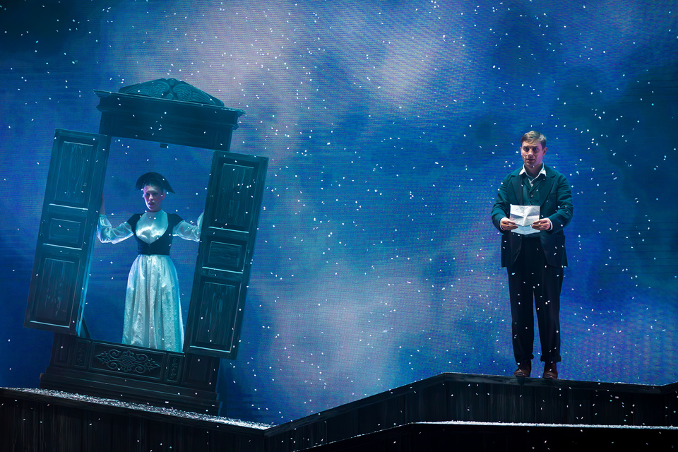Режиссером спектакля выступил Павел Сафонов, который лихо вплел в него колядки, песни и танцы, создав по-настоящему праздничную атмосферу. Он вдохнул новую жизнь в произведение, которое, казалось бы, создано для постановки исключительно на сценах классических театров с вековой историей. Помогали этому и красивые декорации, созданные Максимом Обрезковым, игра света, завораживающая музыка немецкого композитора Макса Рихтера, потрясающая хореографию, актерское мастерство и великолепные голоса солистов театра «Русская песня».