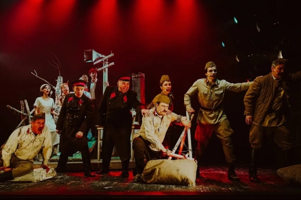 На сцене — актёры театра «У Никитских ворот». Молодые исполнители создают образ «того самого» школяра, застенчивого и смешного, но способного меняться, когда по-настоящему страшно.