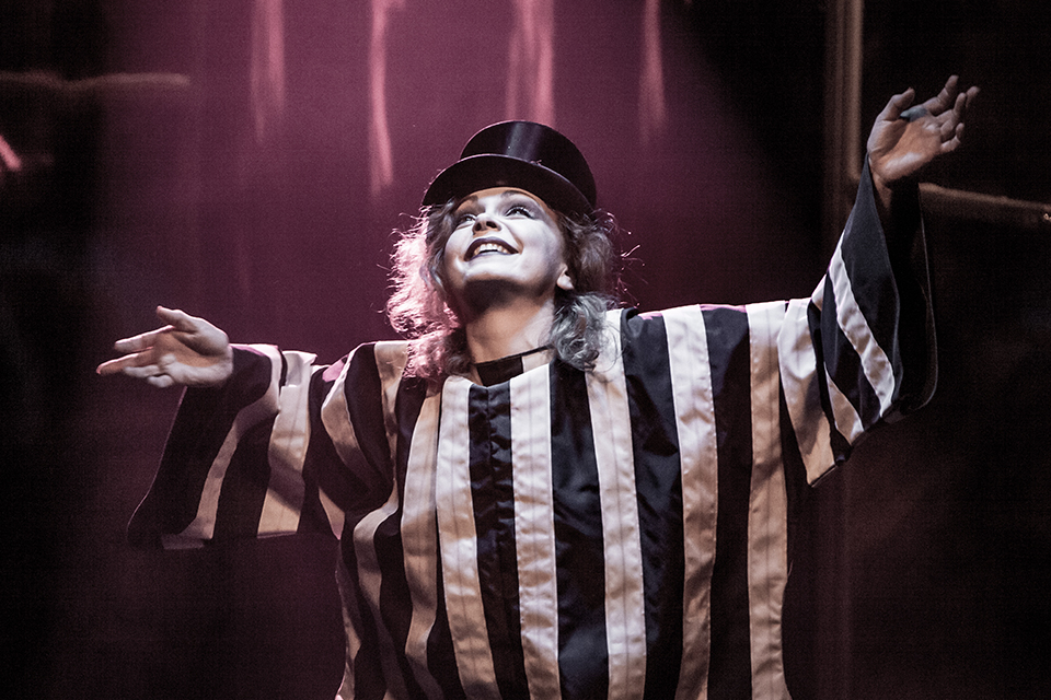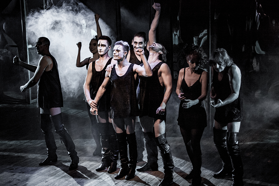 Постановка выполнена в мрачном стиле — зеркальные декорации, макияж, костюмы артистов, выходящих на публику в роли кукол, прекрасное музыкальное оформление.