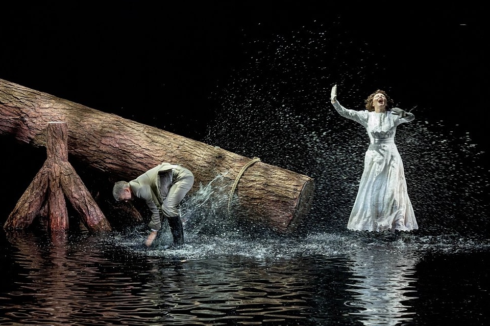 С самого начала и до самого конца спектакля окружающее нас явление — вода. Озеро заполнило всю сцену, а на экране показывается водный пейзаж. Воды много, и она затопляет переднюю часть сцены. Картина захватывающая. По воде плывёт проданный Гурмыжской лес, а на брёвнах можно увидеть комика Счастливцева и трагика Несчастливцева. Также по ней передаются любовные послания: в бутылках или в клюве уточки. Музыка Сергея Филиппова дополняет эту красивую и необычную картину. Спектакль имеет великолепный и оригинальный занавес, сделанный из коры лиственниц, специально привезённой из Сибири.
