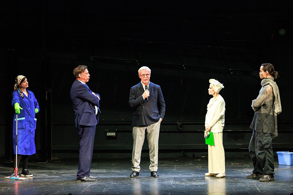 В спектакле заняты Михаил Барщевский, Заслуженная артистка России Евдокия Германова, Заслуженный артист РФ Денис Юченков, Егор Пискунов и Елена Май. Каждый из них привносит собственную интонацию в общий диалог, превращая постановку в многоголосие характеров и взглядов. Актёрская подача остаётся максимально открытой и честной, что усиливает эффект присутствия и вовлекает зрителей в разговор на равных.