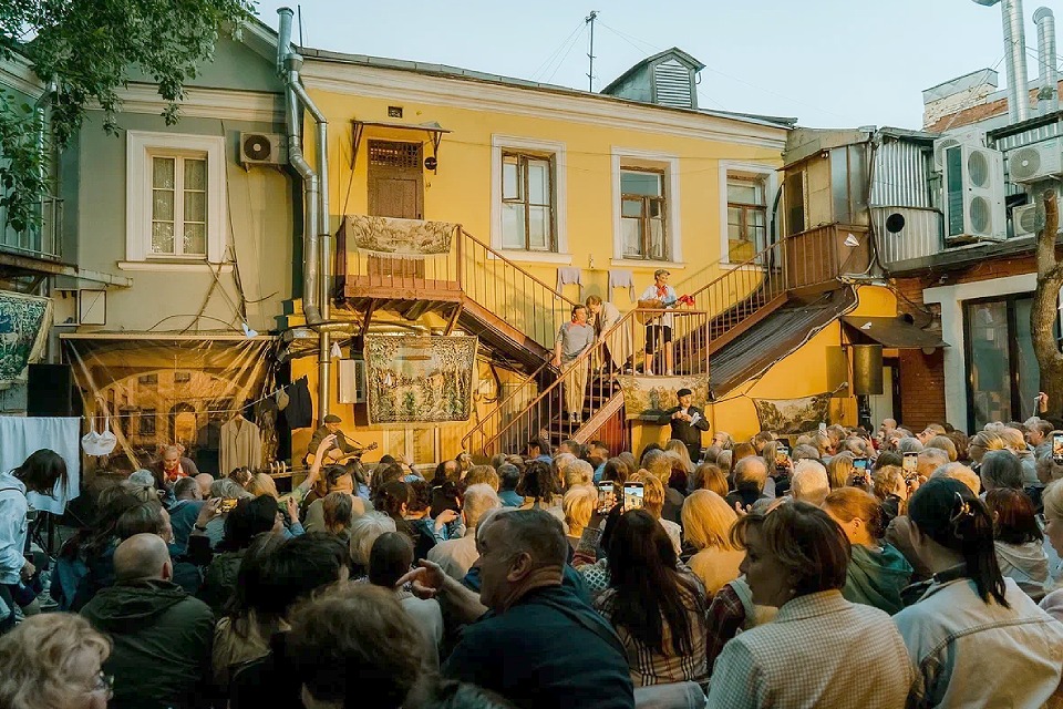 Каждое выступление проходит в уникальной атмосфере московского двора. Здесь не нужны специальные декорации — архитектура самого пространства становится частью действия. Артисты обращаются напрямую к зрителям, а публика — подпевает, поддерживает, эмоционально участвует. Этот спектакль — о памяти, о музыке, которая объединяет, и о том, как простые слова и мелодии способны тронуть по-настоящему.