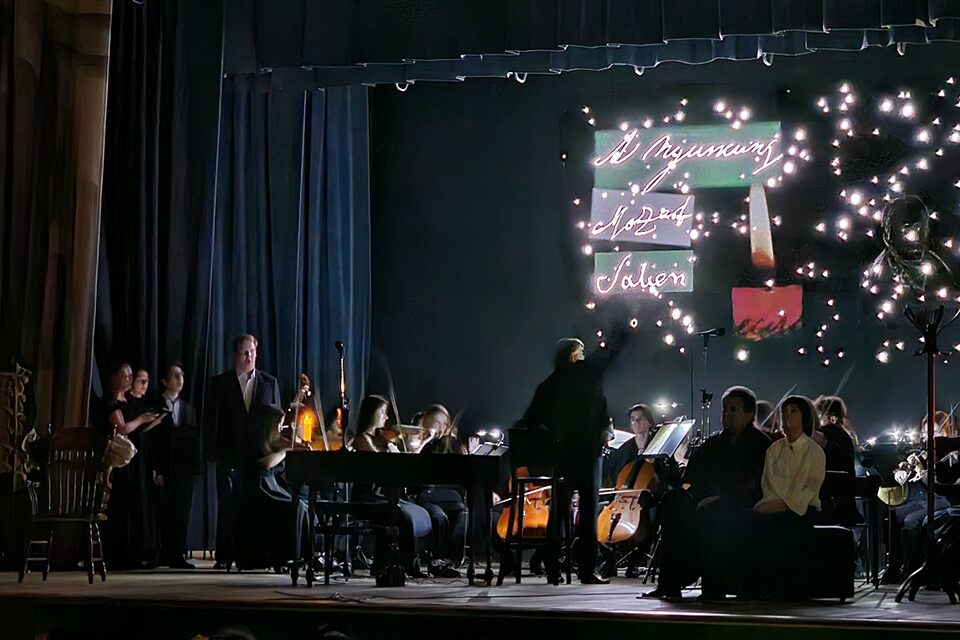 Музыкально-драматическая постановка позволяет зрителям находится в реальном и вымышленном мире одновременно. В спектакле прозвучат сочинения отрывки из работ Глинки. Видеоряд на сцене позволит включить в повествование документы, репродукции многих произведений живописи, скульптуры, иллюстрации, которые были выполнены для спектакля художником Ушаковым.