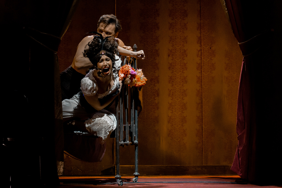 Театр «Русская песня» смело и азартно воссоздает на сцене атмосферу провинциального публичного дома. Пыльные плюшевые портьеры, тусклые зеркала, видавшая виды мебель, приглушенный свет, завеса табачного дыма. Так выглядит яма, в которую попали главные героини и выбраться из которой практически невозможно.